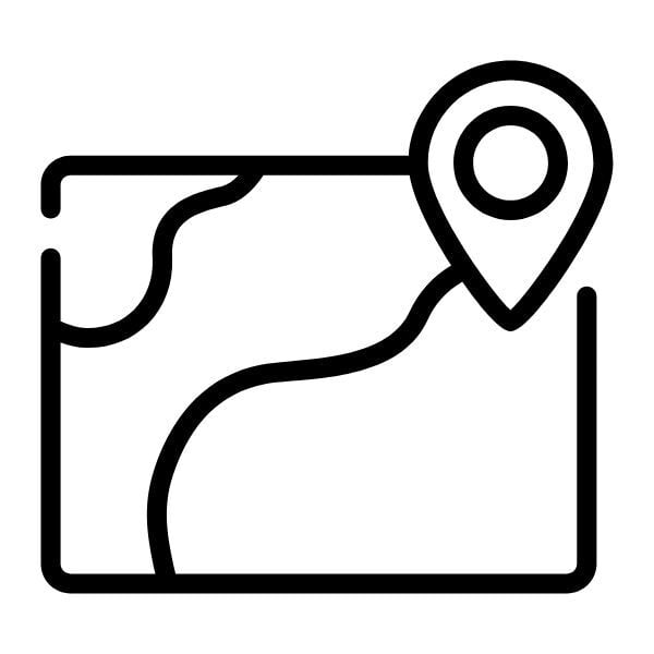 An outline map icon with a clear location marker, symbolizing exploration and finding your way. The main file we provide is SVG format, if you need it in other formats such as eps or so on, contact us via email or send a message.